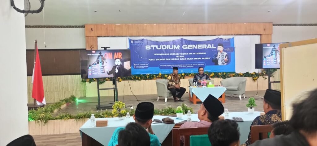 Fakultas Dakwah dan Ushuluddin kembali menggelar Studium Generale sebagai pembuka perkuliahan Tahun Akademik 2025–2026. Kegiatan yang menjadi agenda akademik tahunan ini dihadiri oleh seluruh mahasiswa baru, dosen, dan civitas akademika, serta mengangkat tema “Menumbuhkan Generasi Visioner dan Enterpreneur melalui Public Speaking dan Karisma Suara dalam Dakwah Modern.” Acara berlangsung meriah dengan antusiasme peserta yang memenuhi auditorium kampus Lantai III.