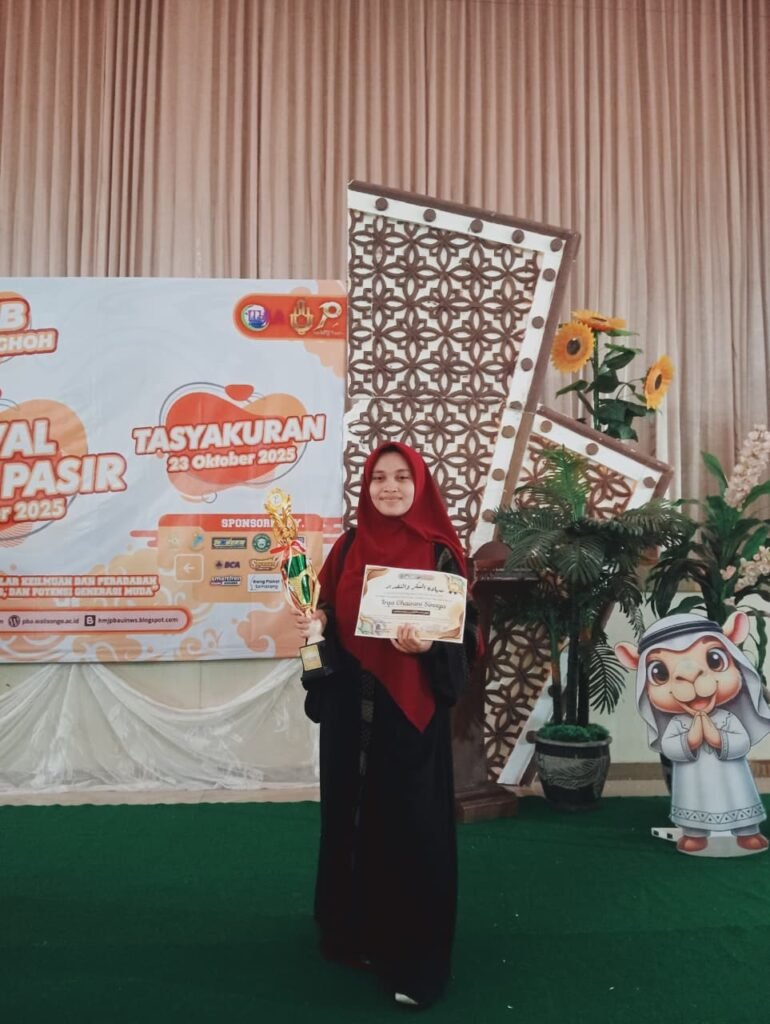 Aziza Nurul, mahasiswi Program Intensif, Prodi Pendidikan Agama Islam (PAI) semester 1 asal Flores, berhasil meraih Juara 2 Lomba Syi’ir ‘Araby Tingkat Nasional dalam ajang Festival Padang Pasir (FPP) 2025 yang diselenggarakan oleh Himpunan Mahasiswa Jurusan (HMJ) Pendidikan Bahasa Arab (PBA) UIN Walisongo Semarang.